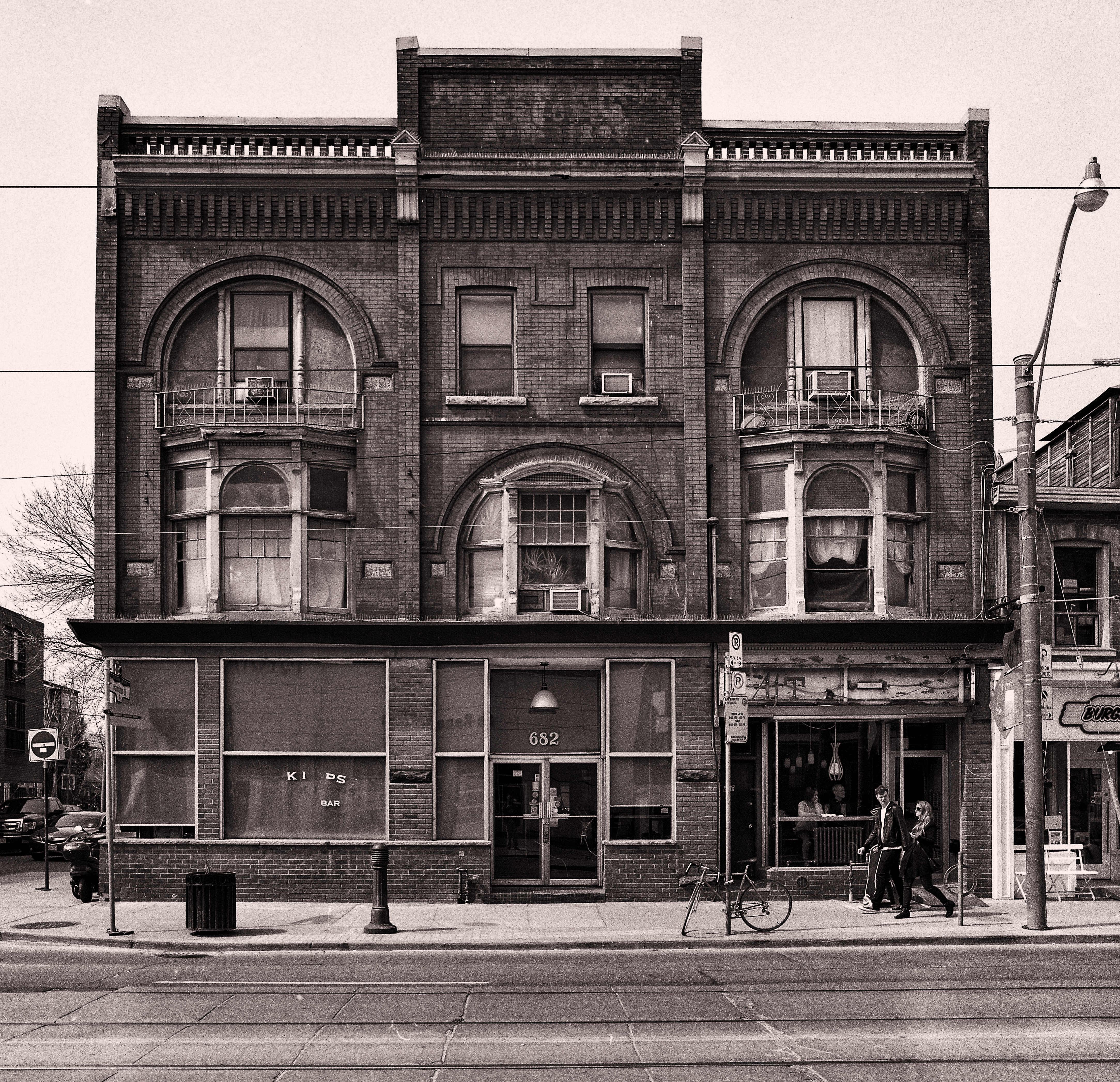 I love this old building on Queen Street East in Toronto, near the River St. bridge. Glass and steel just doesn’t do it for me the way an old building like this does.