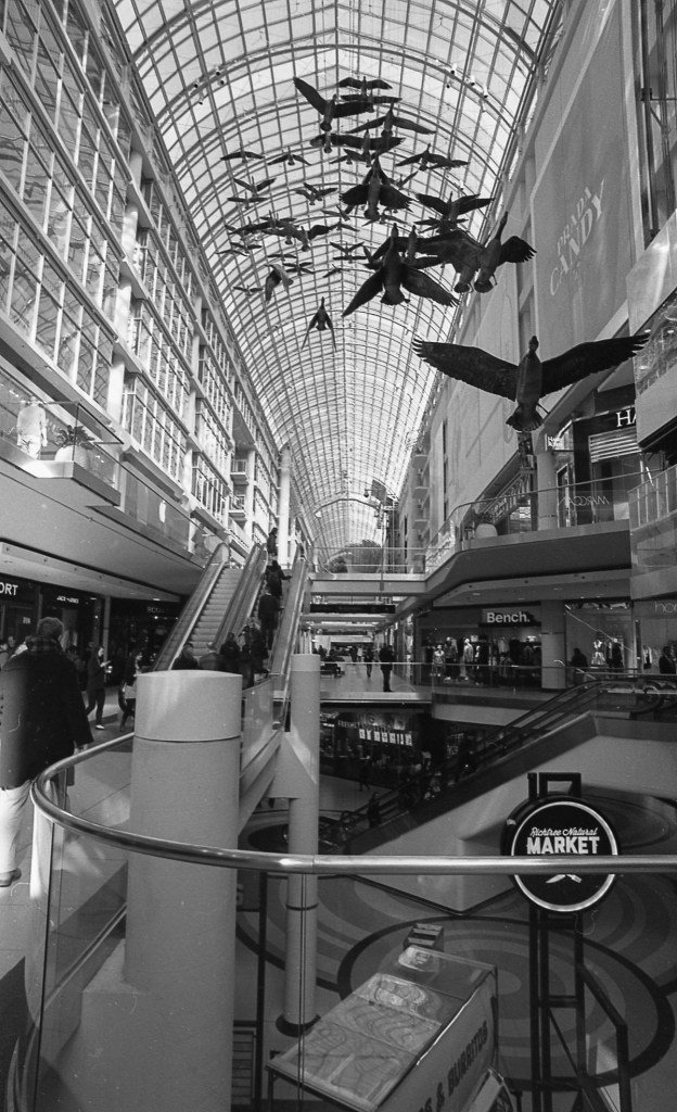 In the Eaton Centre Written by johnmeadowsphotography If you are a resident of Toronto, these images inside the Eaton Centre border on cliche, but it was still fun shooting with the 20mm Nikkor lens. Nikon F4, 20mm/2.8 Nikkor lens Tmax 400 film Share this: Click to share on Bluesky (Opens in new window) Bluesky Click to share on Mastodon (Opens in new window) Mastodon Click to share on Facebook (Opens in new window) Facebook Click to share on Reddit (Opens in new window) Reddit Click to email a link to a friend (Opens in new window) Email More Click to share on LinkedIn (Opens in new window) LinkedIn Click to share on Pinterest (Opens in new window) Pinterest Like Loading... Related 4 thoughts on “In the Eaton Centre” Fun lens! Got mine yesterday! LikeLiked by 1 person Reply You’ll love it! LikeLike Reply I had AF version many years ago. This one is MF. Nice, clean from Samy’s in LA, open box. Will use on various camera bodies. Right now on F2As. I plan to shoot IR film with it using an almost opaque red filter. I’ll let you know! LikeLiked by 1 person Looking forward to seeing the results! LikeLike Reply Leave a comment Cancel reply Δ