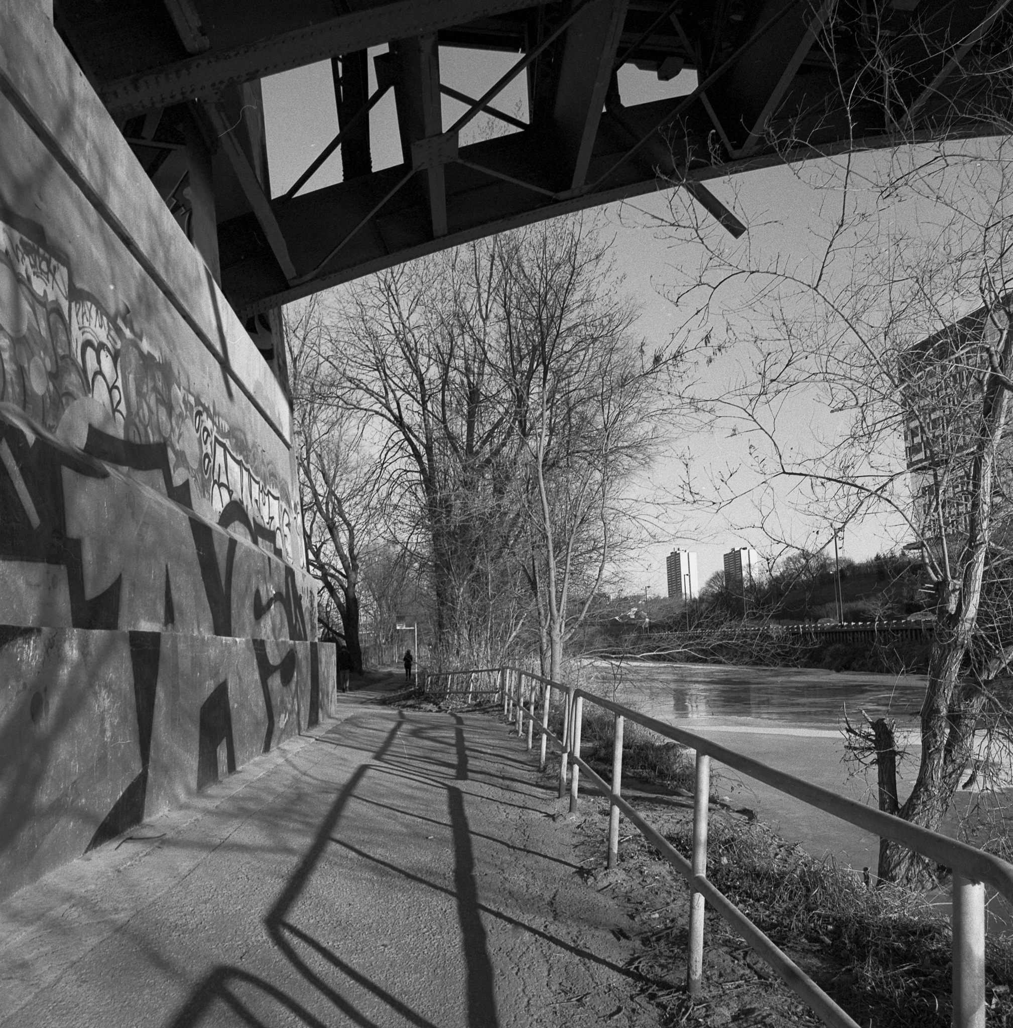 I have never been a huge fan of Ilford’s Delta 400 film, but recently as part of a trade I got a few rolls of it in 120 format. It was long-expired (2006) but I was told it had been frozen. I decided to shoot it at EI 200, and develop it for 1 minutes in D-76 1+1 @ 20 C, and I was pleasantly surprised by the results.