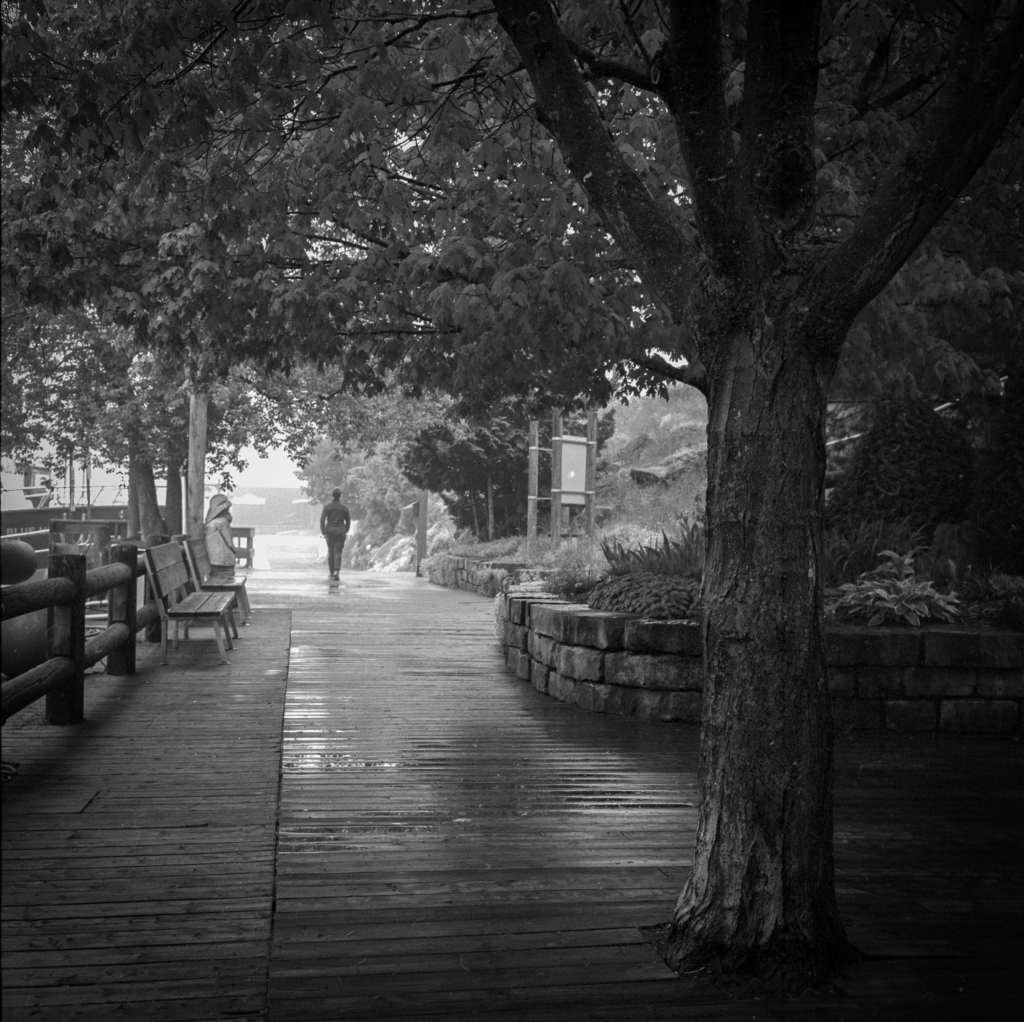 Earlier this year I spent a couple of days in Tobermory, Ontario. The first day was unseasonable cold, with rain, mist and fog. It made for some great atmosphere in the harbour though! I took both images with my Rolleiflex 3.5E3, using Ilford HP5+ film, pushed one stop to EI 800.