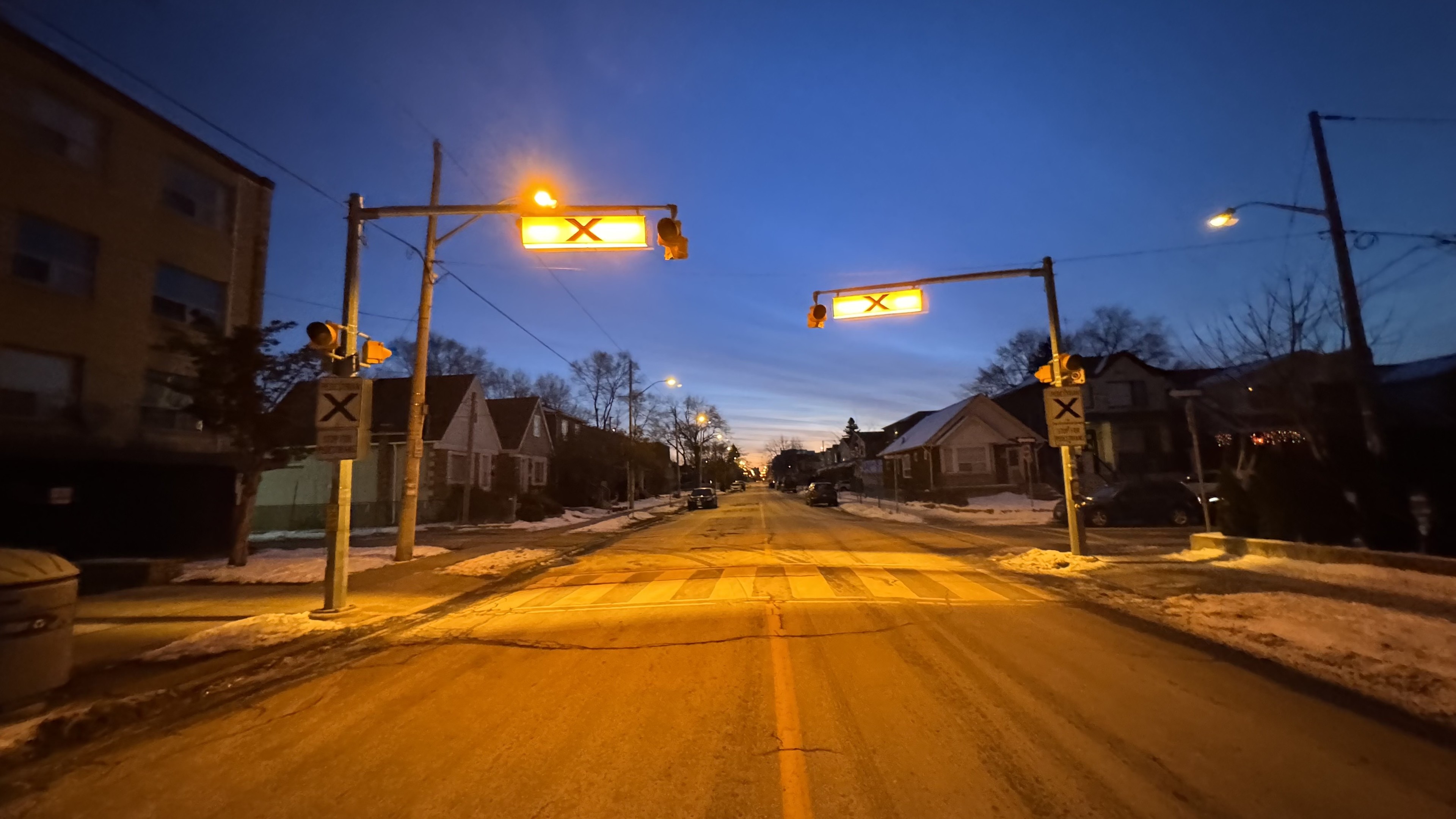 I normally tend to black and white imagery, but this morning the intense blues and oranges of the crosswalk at about 6:45 am really struck me. Also, there was no traffic so I was able to stand in the middle of the road to quickly get the shot with my iPhone.