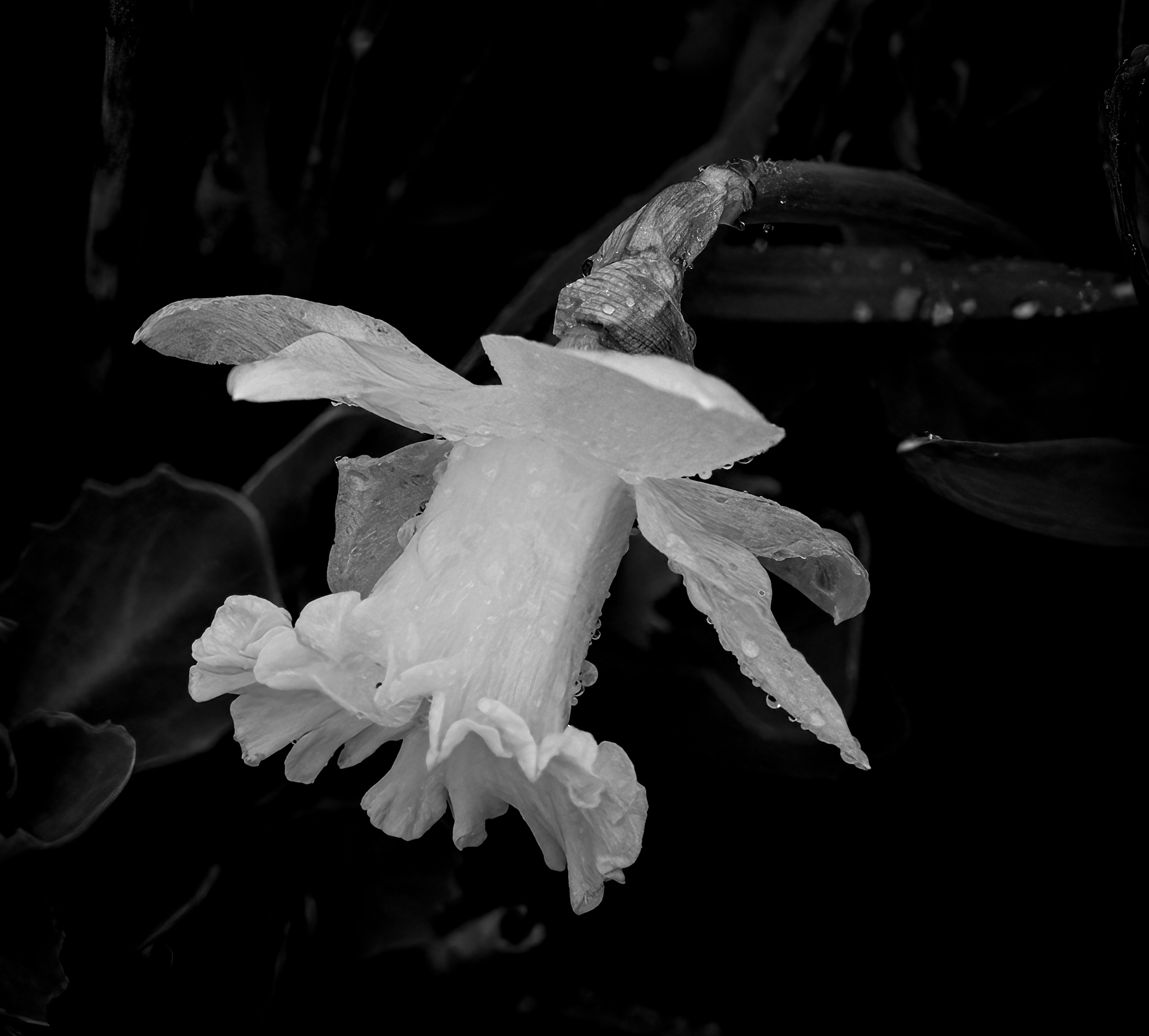 Coming home from Camera Club in the rain last night, and knowing more rain was forecast overnight, I resolved to go out this morning and shoot black and white macro images of rain drops on flowers.