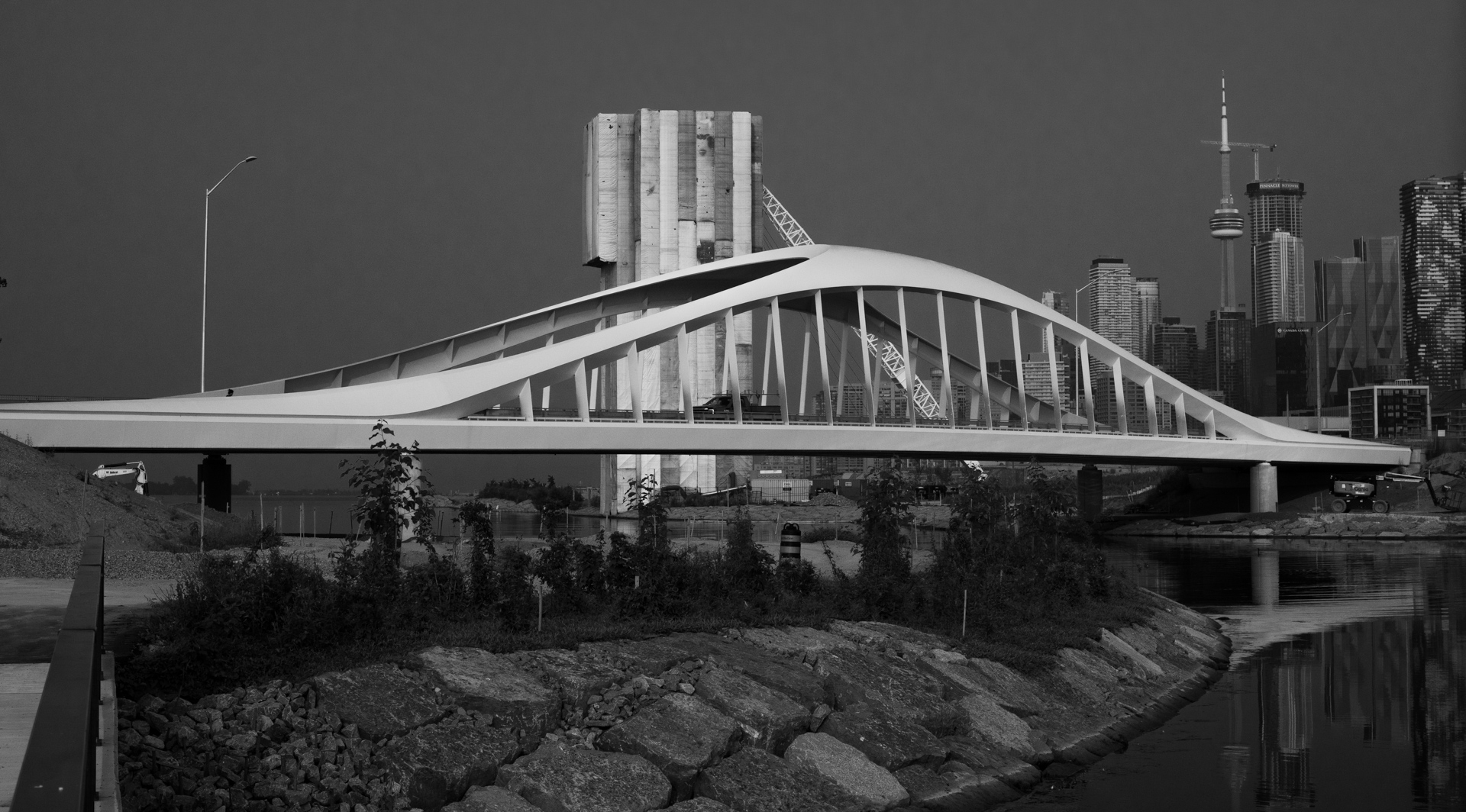 There is a new park in the Portlands in Toronto, and recently I went down erly in the morning to check it out. In the first image I was able to get a new angle on one of the new bridges. I reminds me of a retro-future look, like the Thunderbirds show from the 1960’s.