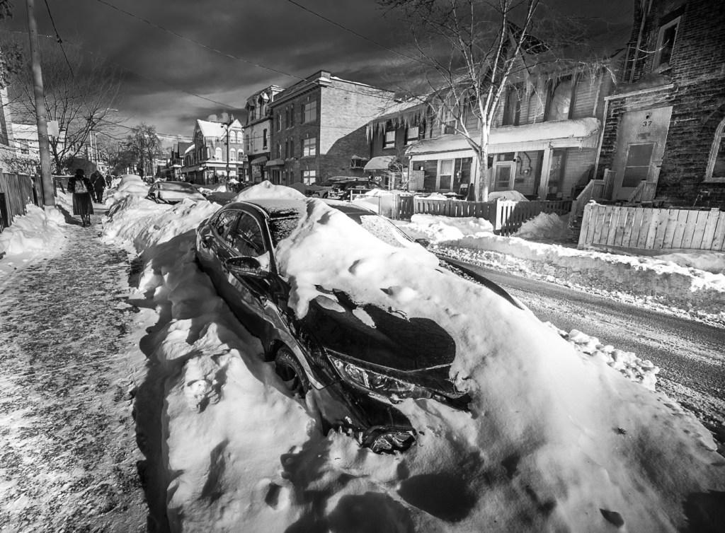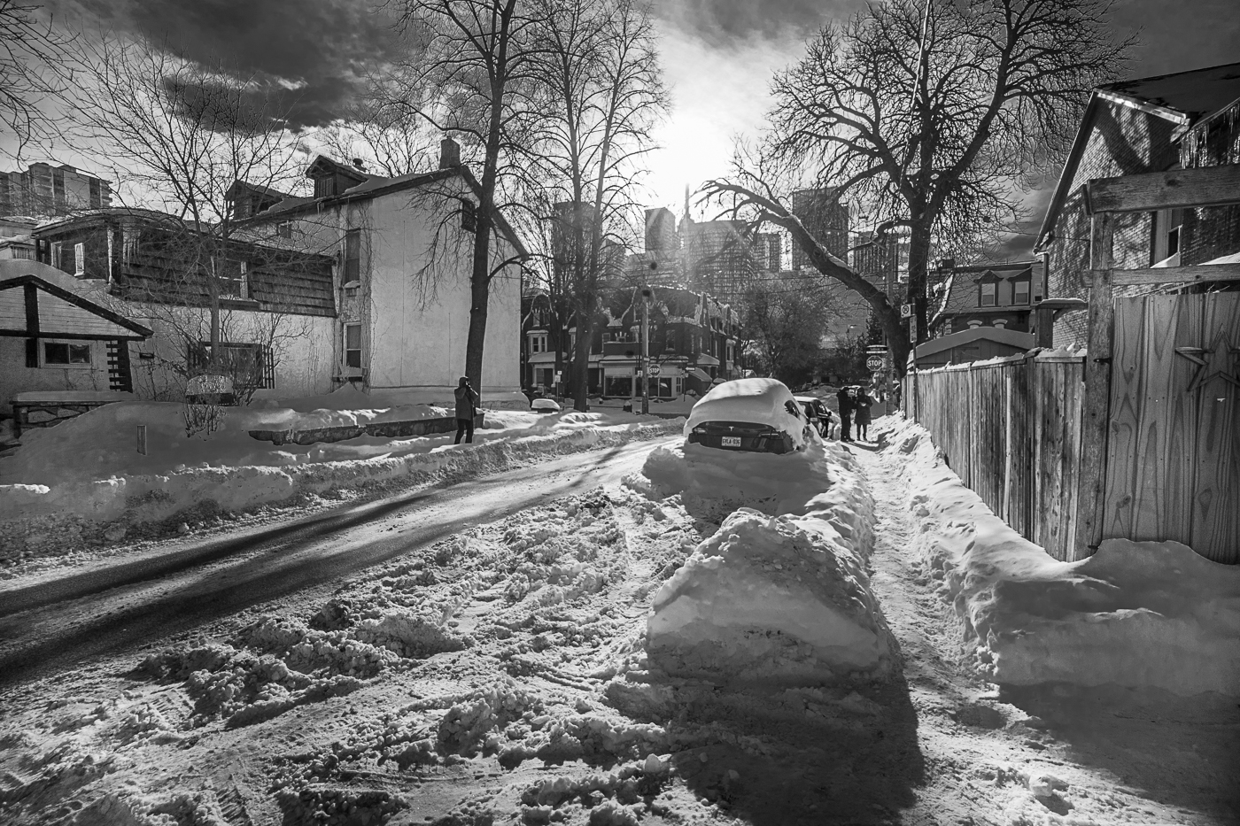 I was downtown in the Dundas and Spadina area this morning. Lots of sun, and lots of snow, as the clean up continues.