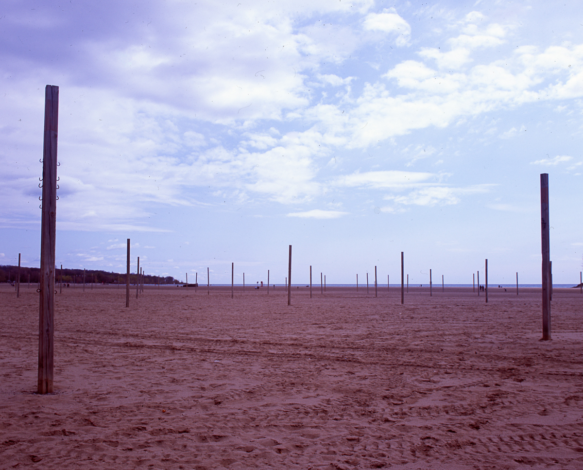 Today i got some E6 (slide) film back that I had shot a few weeks ago at the large Beach Volleyball area at Ashbridges Bay here in Toronto. The scene looked a bit surrealistic to me.