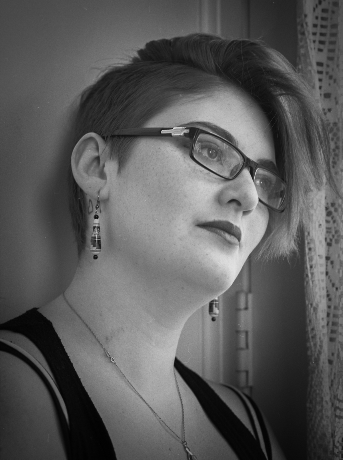 Today another three portraits if my good friend and frequent collaborator Jennifer. This shoot was a experiment on two fronts: it was the first time I tried shooting a hand-held portrait with my 4×5 Speed Graphic and 127mm/4.7 Kodak Ektar lens, and it was the first time I tried shooting some Fuji NC 160 4×5 colour sheet film I’ve had for a while.