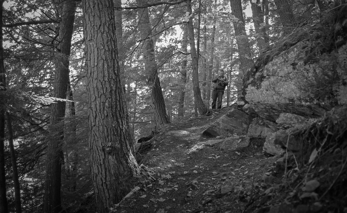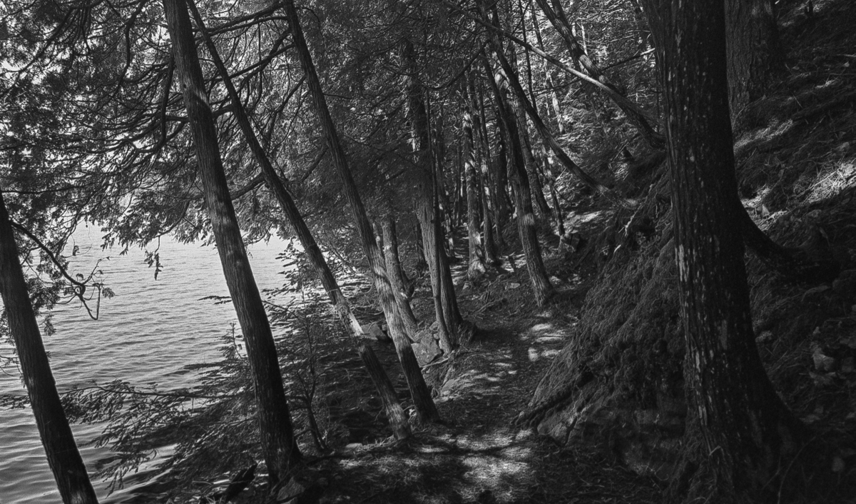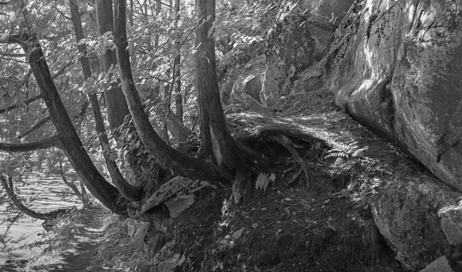 During the trip to Muskoka we hiked the Solitaire Trail in Limberlost. A lovely trail it is, full of interesting trees. Some of my favourites are in these three images, all taken with my Voigtlander Bessa R2M camera and 35mm/f1.7 Ultron lens, on Kodak TMax 400 film