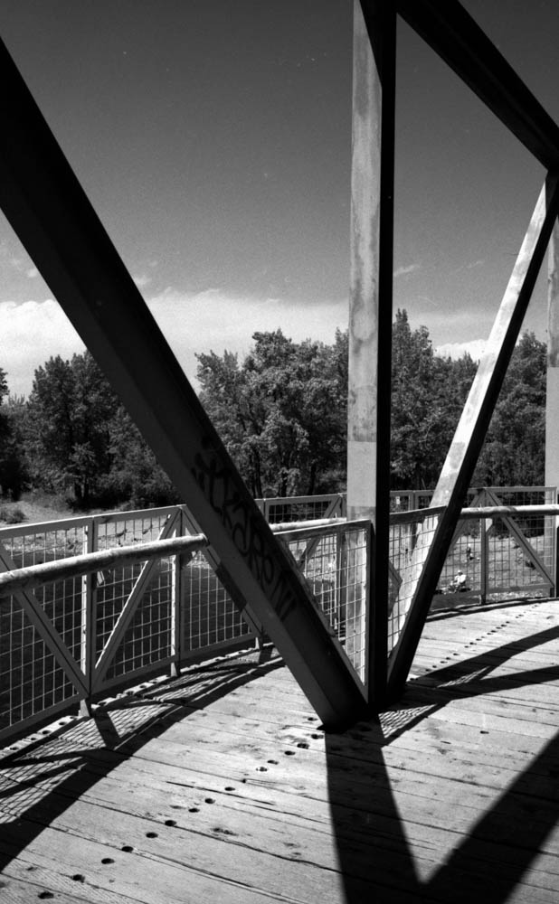 Bridge at Bowness Park #2 July 28, 2017 · Leave a comment · Another image from the bridge at Bowness Park, Calgary, this time more of a close-up. Voigtlander Bessa R2M, 35mm/f2.5 Color Skopar lens with red filter Rollei SuperPan 200 film