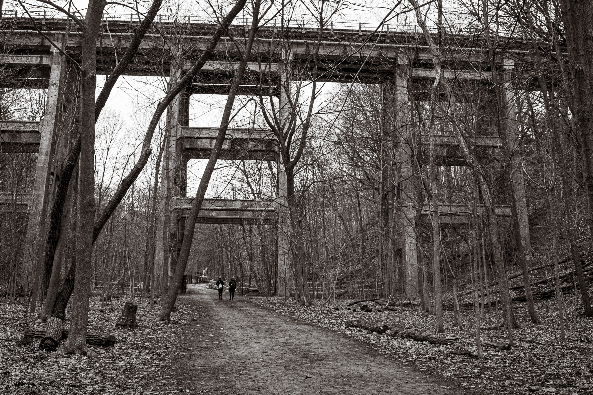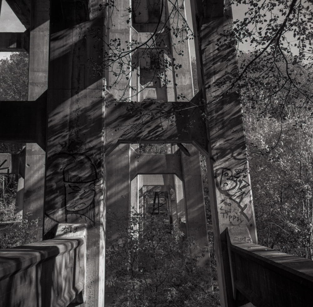 Under a Bridge December 9, 2019 · Leave a comment · From a photo walk near the Brickworks earlier in the fall. The light was amazing for much of the day! Rolleiflex 3.5E3 (Xenotar lens) Fuji Acros 100 film, developed in Rodinal