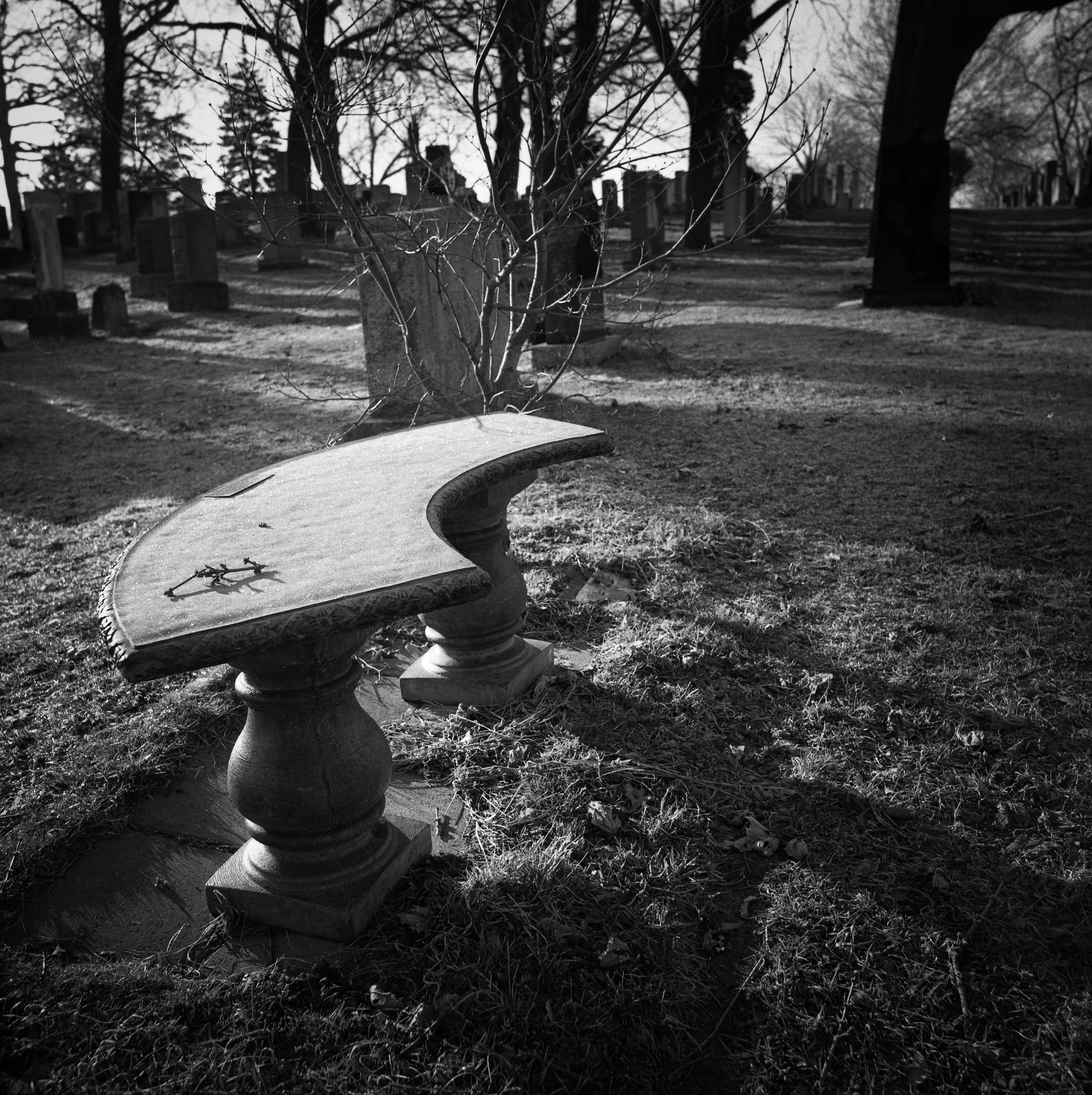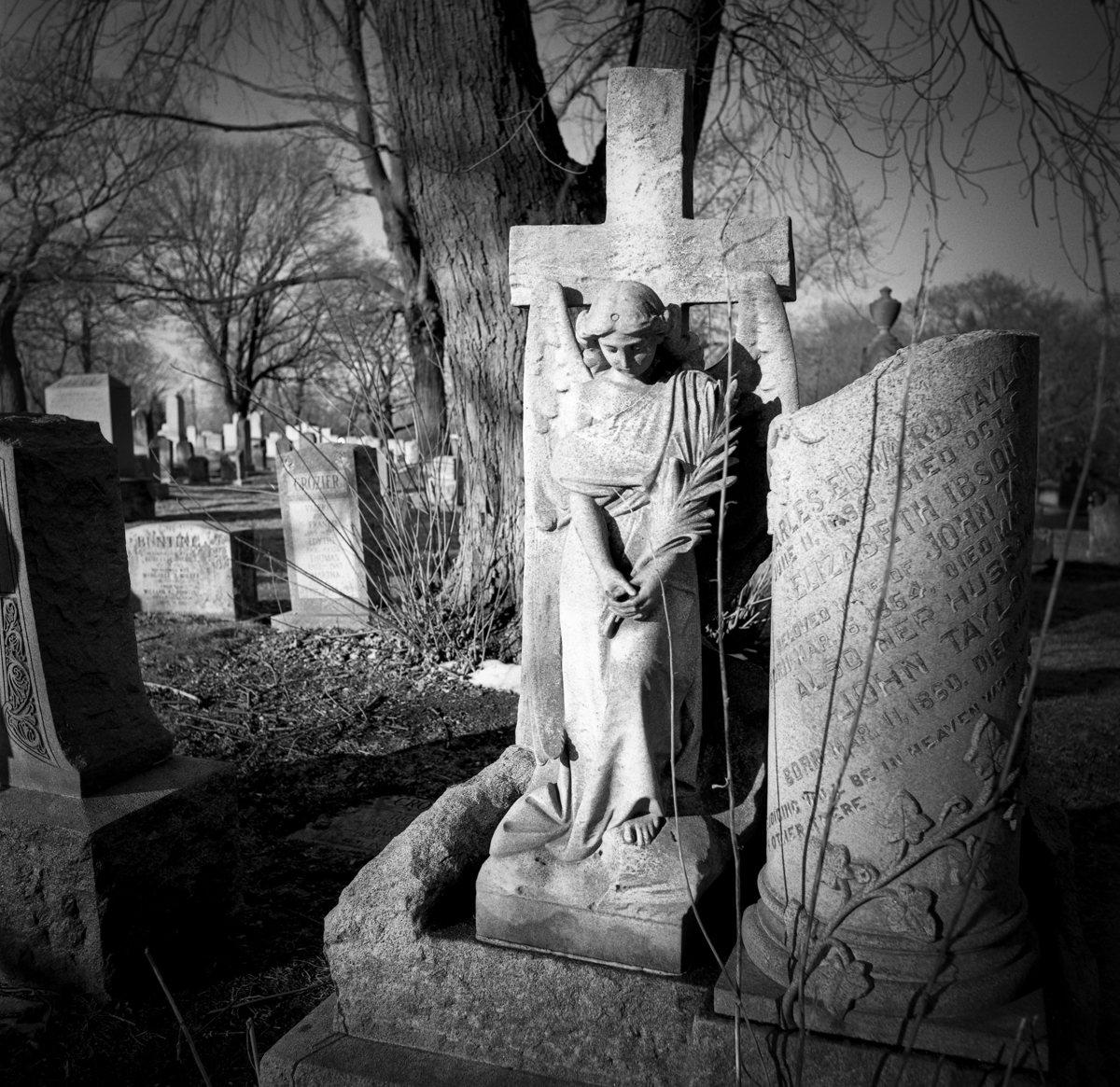This past Saturday I went again to St. James Cemetery in Toronto, and I liked the look of this freshly plowed road leading to a mausoleum. I used my 200mm/f4 lens on my Pentax 67, roughly equivalent to a 100-135mm telephoto lens in 35mm.