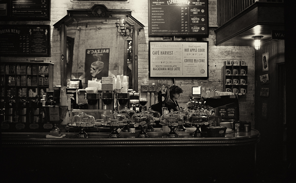 I’ve shot the wagon wheels in Toronto’s Distillery District a number of times, but this is the first time in colour, and my first time shooting Kodak Portra 800. Shooting in 6×9 format (spooled for 620 for my Medalist) I am amazed at the tight grain structure for an 800 speed film! I will need to get more of this stock!