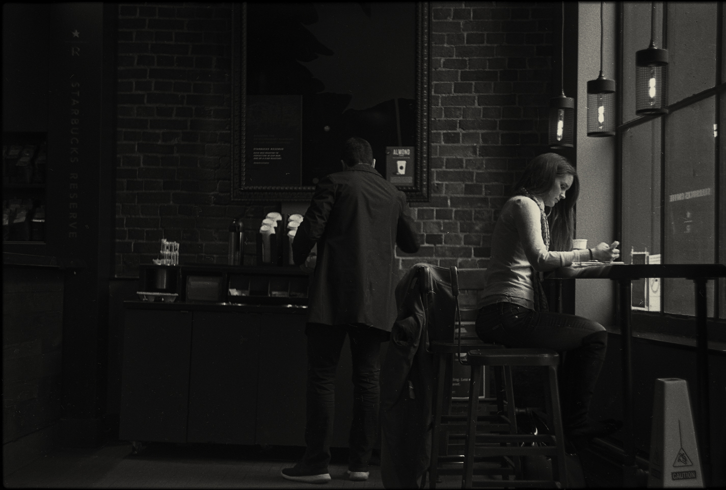 I was out with a photography friend yesterday, and I took this portrait of him at the Only Cafe. The technology was old and new; the camera was my Sony A7ii, but the lens was my old Soviet era Helios 44/2 lens, mounted via adapter. The light was from an overcast day, coming in through a window. I love what this lens can do!