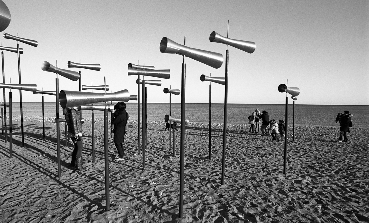 Art Installation at the Beaches 3 March 11, 2018 · 2 Comments · Back to the Beaches. Nikon N90s, 20mm/f2.8 Nikkor lens TMax 400 film, developed in Microdol-X