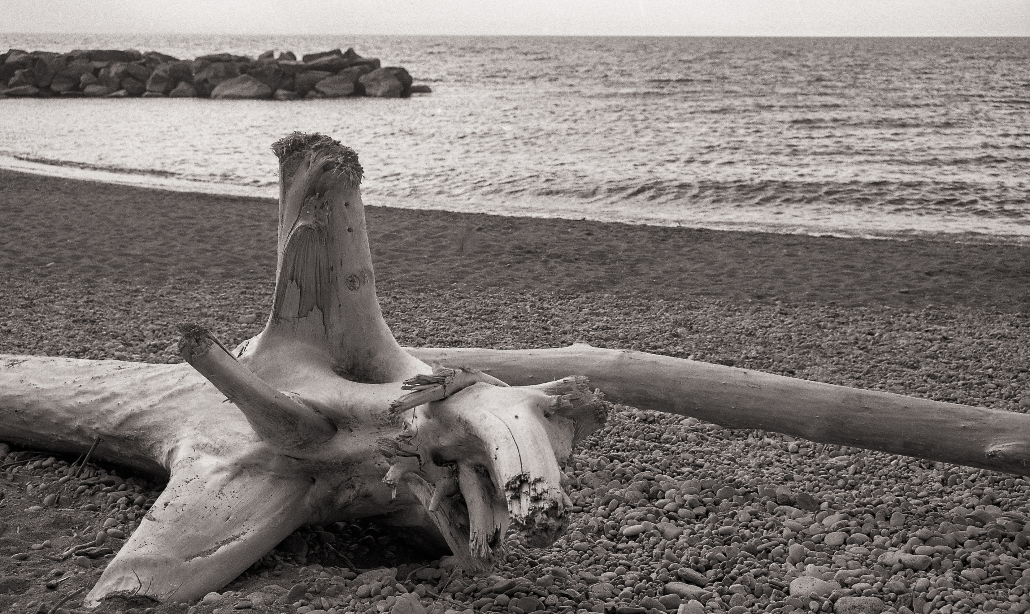 Driftwood June 17, 2018 · 2 Comments · Nikon N90s, 20mm/f2.8 Nikkor lens Kodak TMax 400 film developed in TMax developer