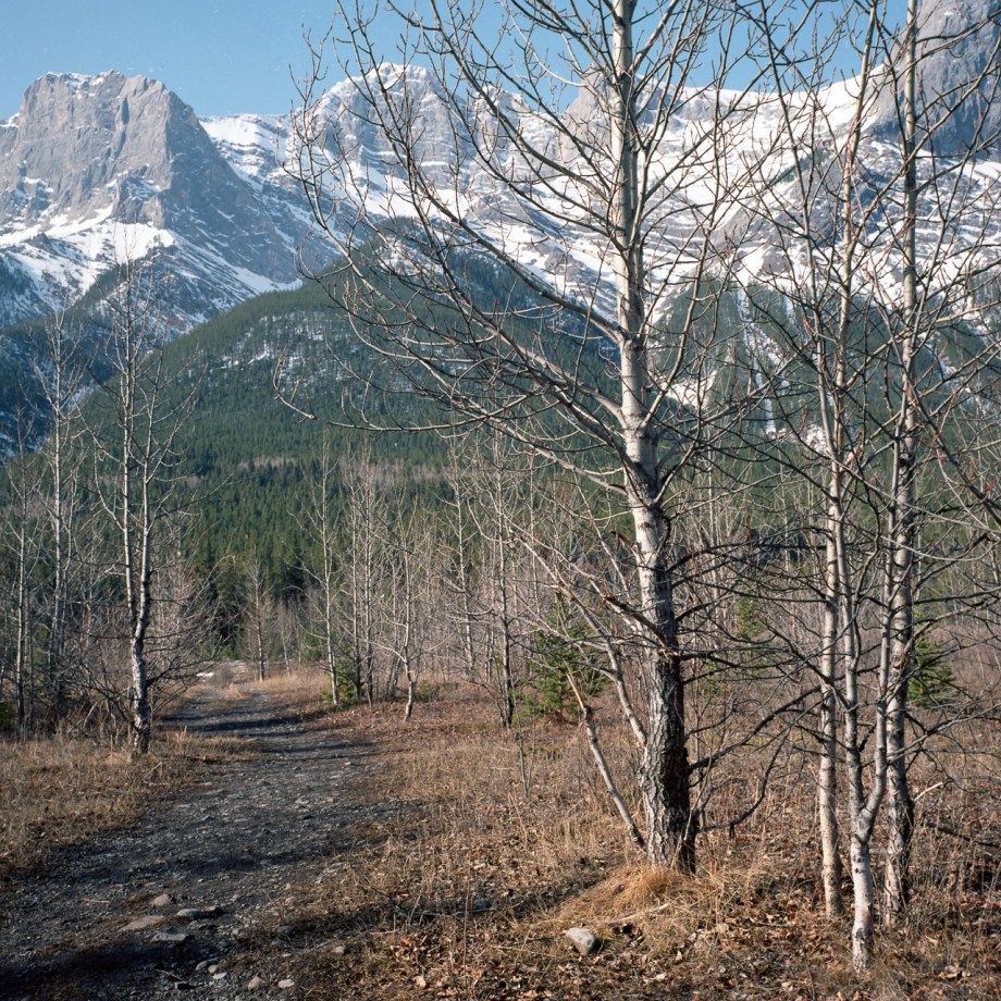 Against the background of large mountains in Canmore, these small trees caught my eye.