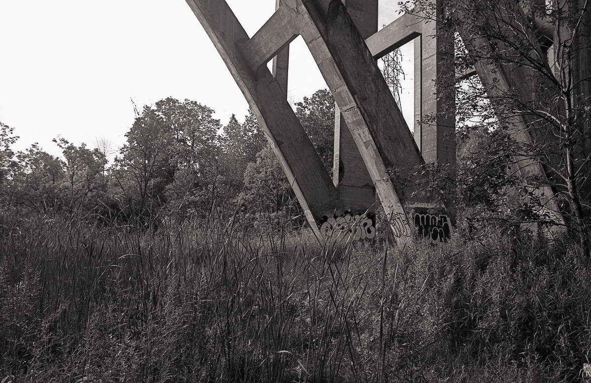 I’ve lived long enough in Toronto to remember brighter days, when the city was described as “New York run by the Swiss”. Before decades of infrastructure neglect, enshrined through the selfish parsimony of the electorate, and the cowardice of elected officials. In today’s images, even though the park and the bridge are still in use, there is still to my eyes an atmosphere of neglect. All images created with Nikon F3, 28mm/2.8 Nikkor lens. Rollei Retro 80s film developed in Rodinal and toned in post.