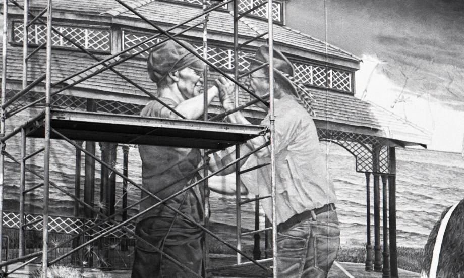 I was out recently and saw this mural with the scaffolding in front of it and it looked to me like two friends reuniting with a fence in-between them. And it reminded me of how today we have some many people obsessed with fences and walls.