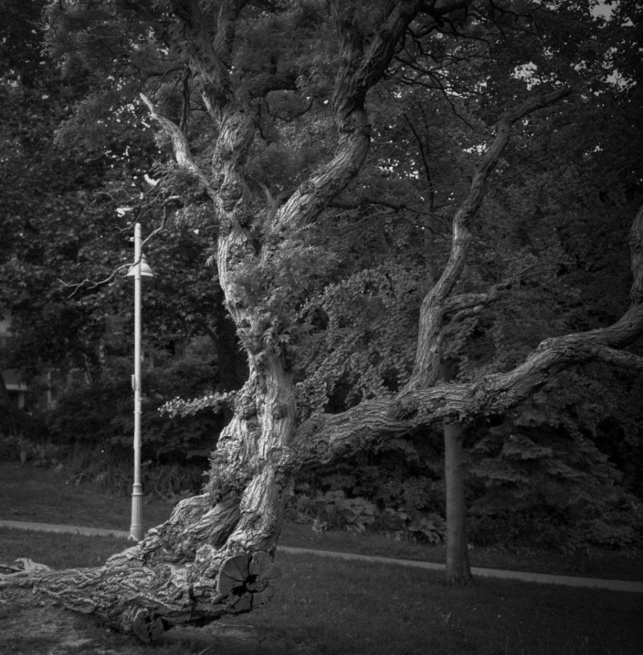 Sometimes an image surprises me. Last Saturday afternoon before a concert I had a little while after the rehearsal to wander around with my Hasselblad. I didn’t finish the roll until earlier today (a couple of attempts at self-portraits: the less said the better). I don’t even remember taking this image but the darkness of the forest in this image really struck me; is the shard of sunlight coming through enough to overcome it? It’s funny when an image hits close to home.