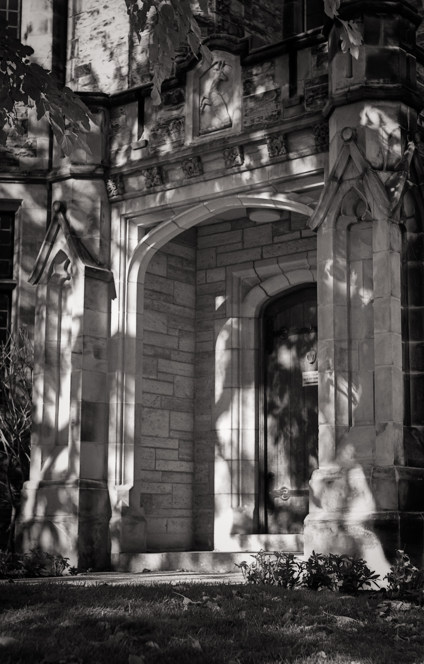 Another image from my first roll shot in the Voigtlander Bessa 66 medium format folder. On Sunday morning the best views of Philosopher’s Walk on the U of T campus seemed to be straight into the sun, which usually results in a lot of flare. I placed the sun behind a tree branch to try to minimize it, and I do like the results.
